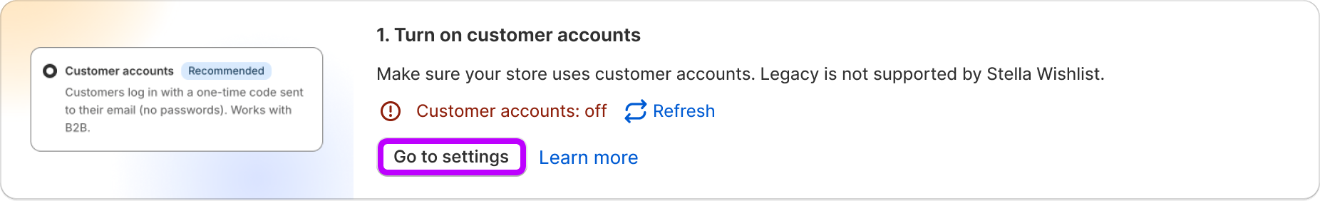 You must have customer accounts turned on to use our app. Press "Go to settings" to do this.