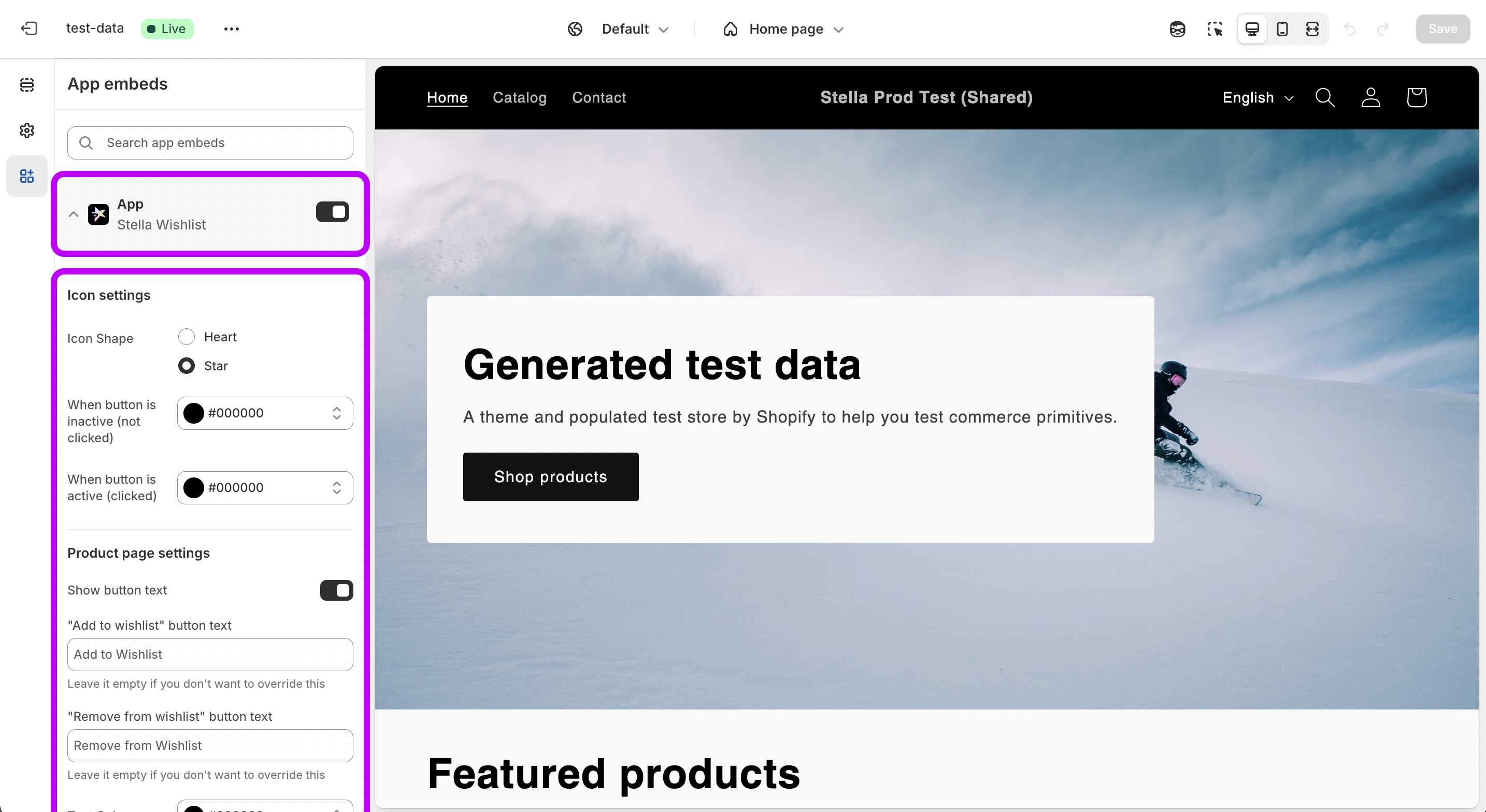 The app embed will be automatically turned on. This is also where you can customize the look of the "Add to wishlist" button.